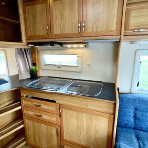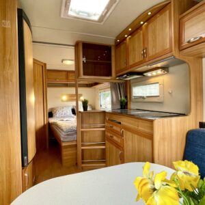 Vaunun etuosassa on viihtyisä U- ryhmä, peräpäästä löytyy parivuode ja pesuhuone/ WC.