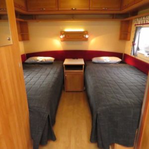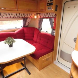 Vaunun takaosassa erillisvuoteet, edessä tilava U- ryhmä. Lisäksi suuren kattoikkunan ansiosta valoisa keittiöryhmä jossa runsaasti laskutilaa.