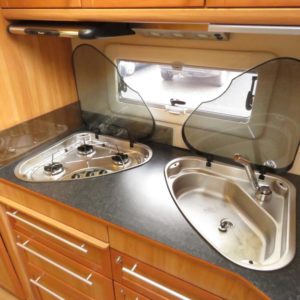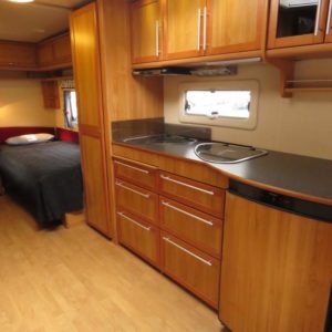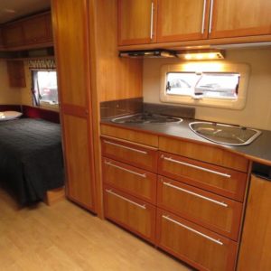 Vaunun takaosassa erillisvuoteet, edessä tilava U- ryhmä. Lisäksi suuren kattoikkunan ansiosta valoisa keittiöryhmä jossa runsaasti laskutilaa.