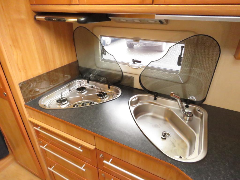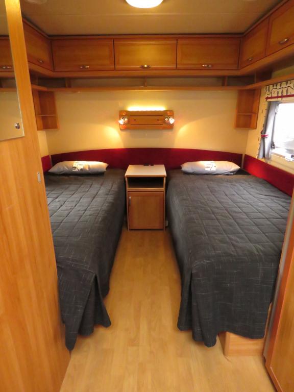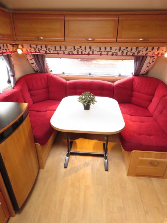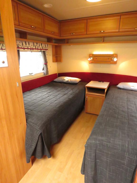 Vaunun takaosassa erillisvuoteet, edessä tilava U- ryhmä. Lisäksi suuren kattoikkunan ansiosta valoisa keittiöryhmä jossa runsaasti laskutilaa.