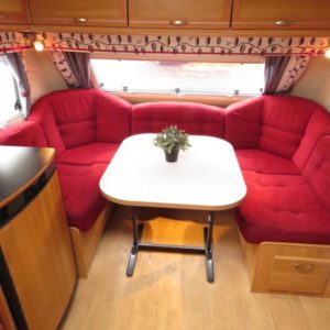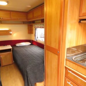 Vaunun takaosassa erillisvuoteet, edessä tilava U- ryhmä. Lisäksi suuren kattoikkunan ansiosta valoisa keittiöryhmä jossa runsaasti laskutilaa.