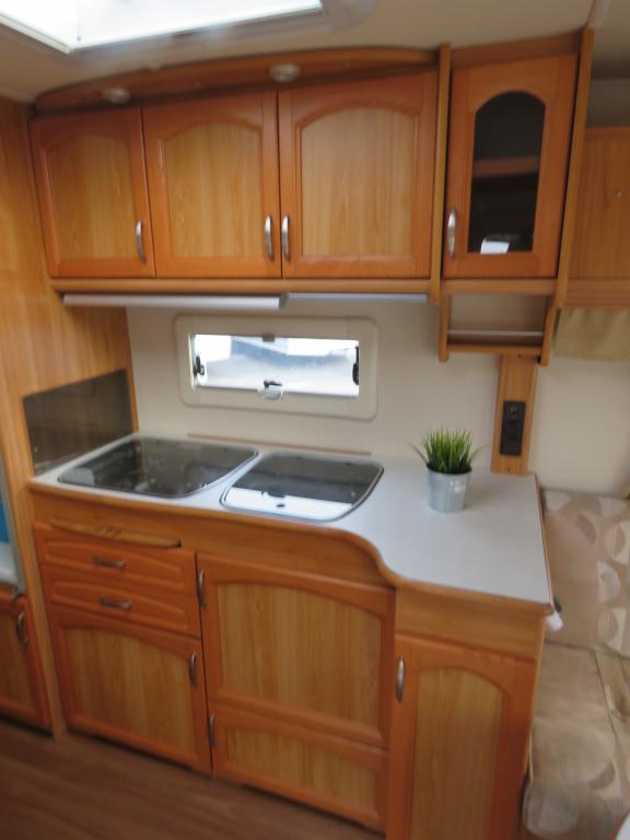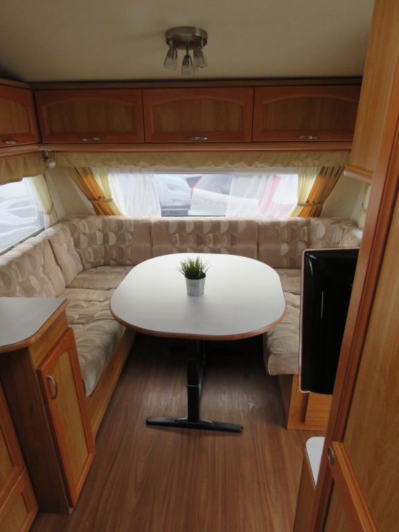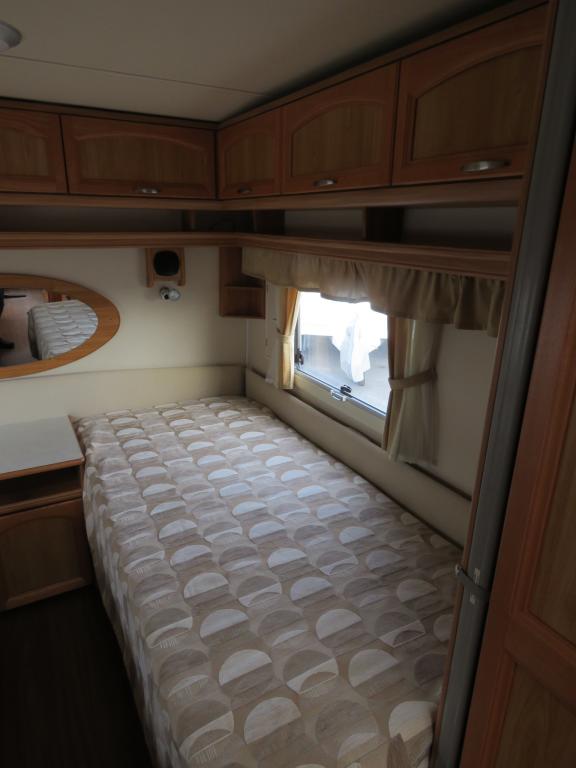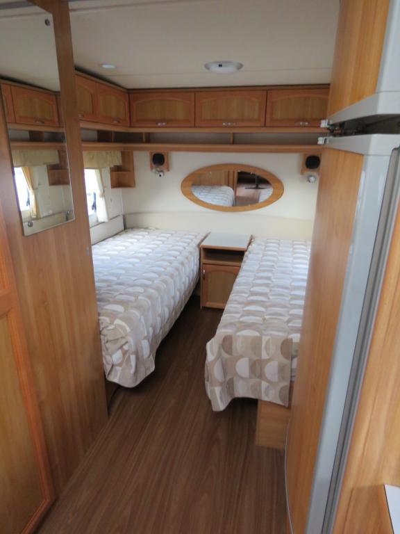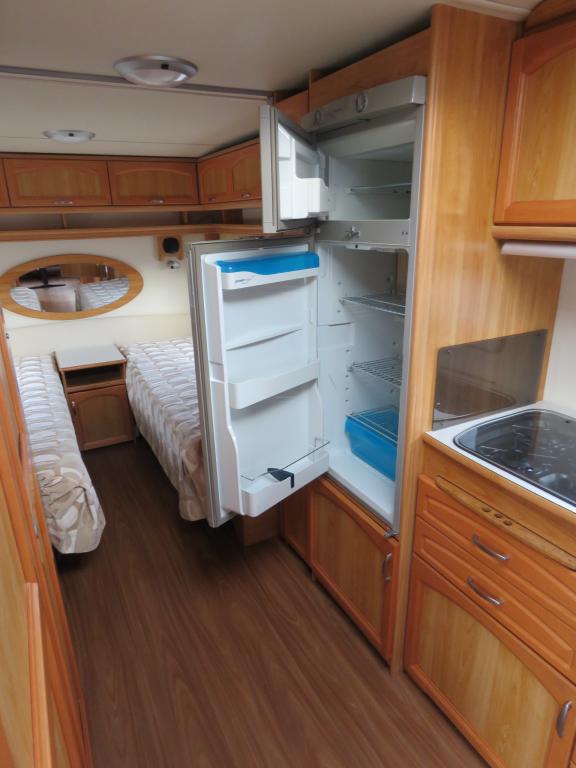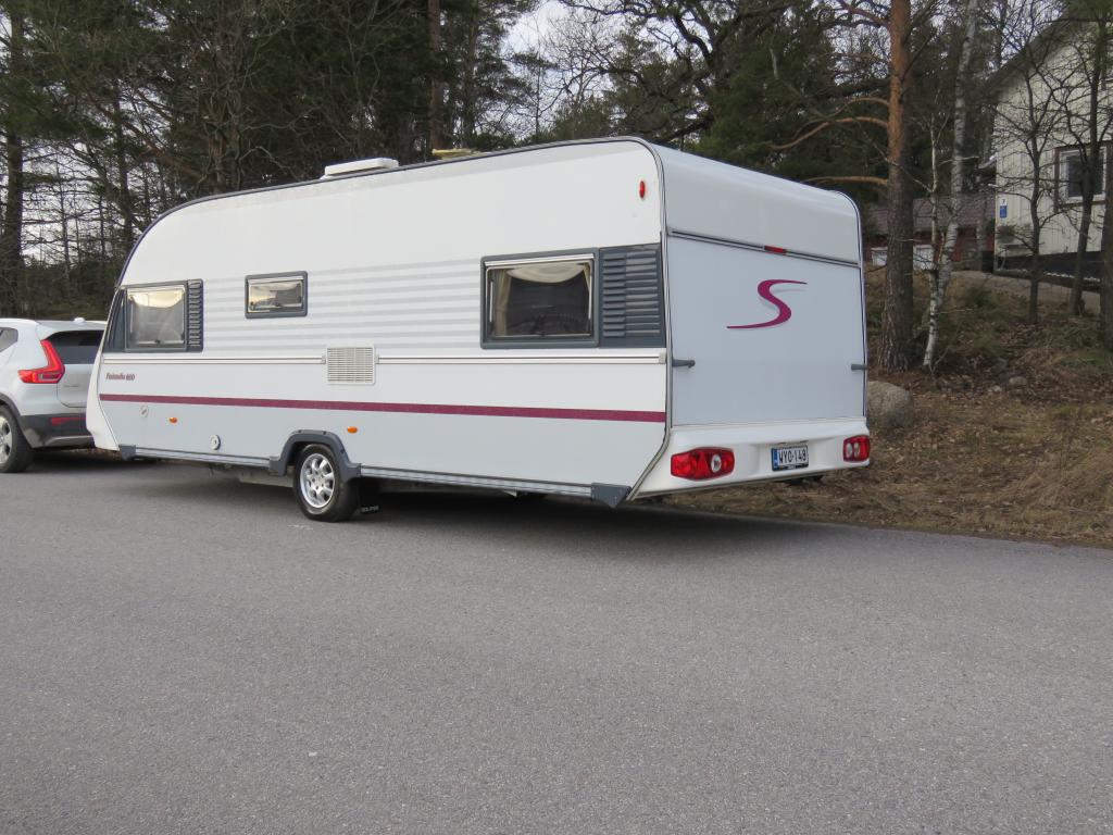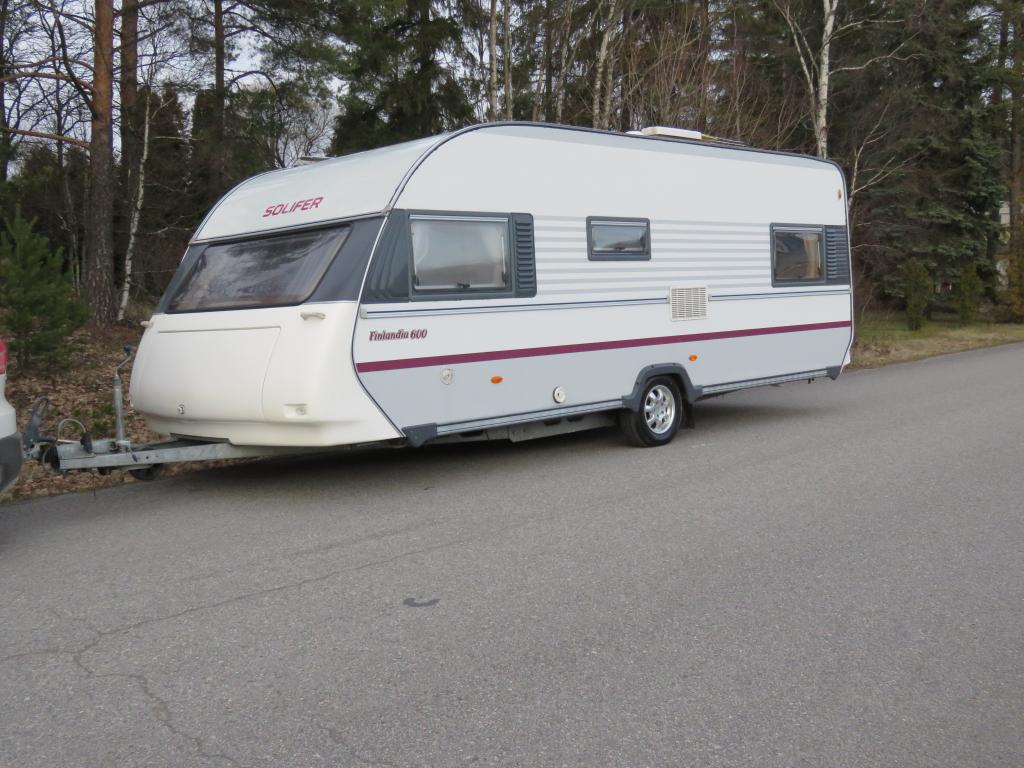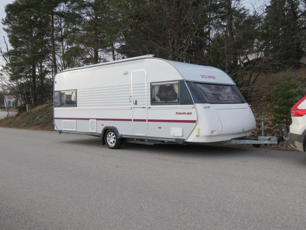 Hieno erillisvuoteinen Solifer. Hyvien varusteiden lisäksi tv, pyyheteline 230 v.,hyttysovi. Takana leveät erillisvuoteeet, keskellä pesuhuone ja paljon vaatekomerotilaa, iso jääkaappi-pakastin ja edessä valoisa iso U-ryhmä. Talvivaunujen aatelia.