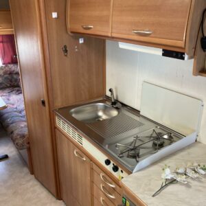 Jääkaappi, Kasetti WC, Liesi, Lämminvesiboileri, Nestekiertolämmitys, Radio, Sähköpatruuna, TV-antenni tai lautasantenni, Tukijalat, Primus, Lattialämmitys (nestekierto), kwh-mittari, Lattialämmitys, Kattoluukku, Parivuode, Pesuallas