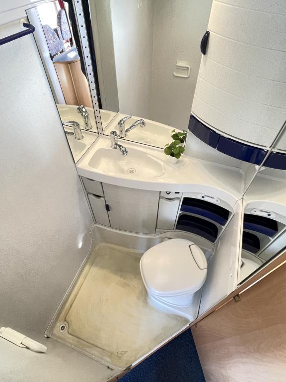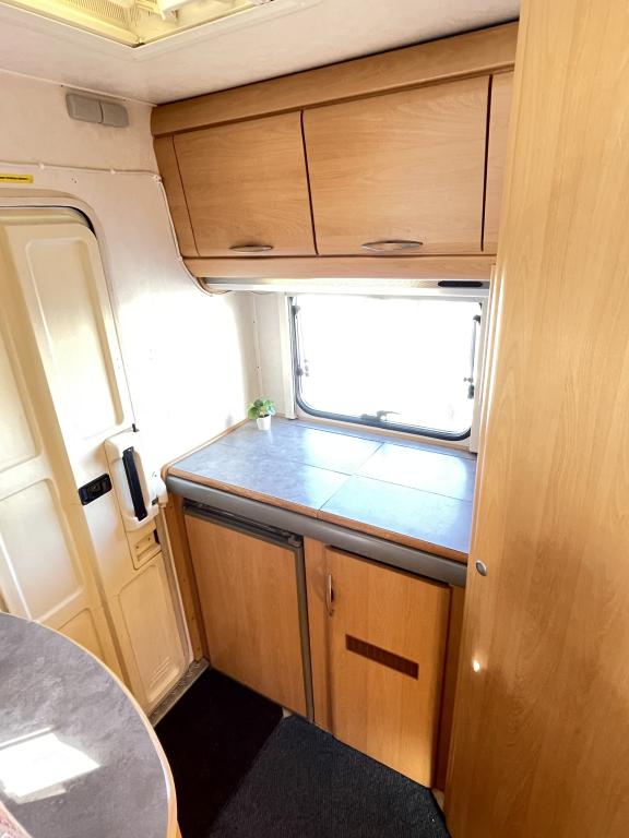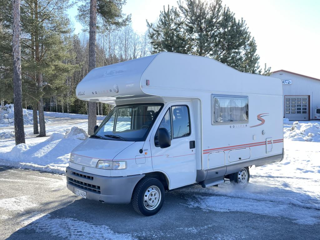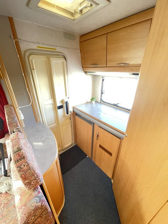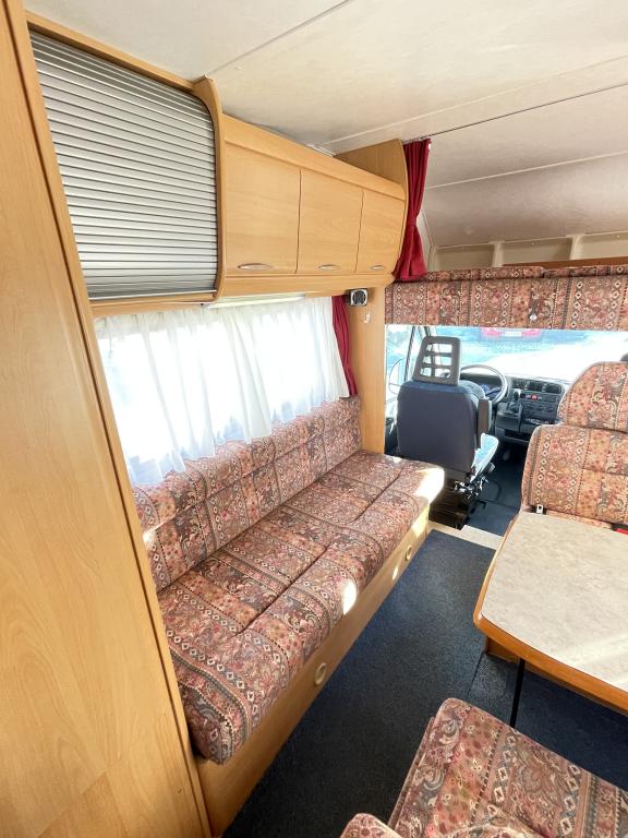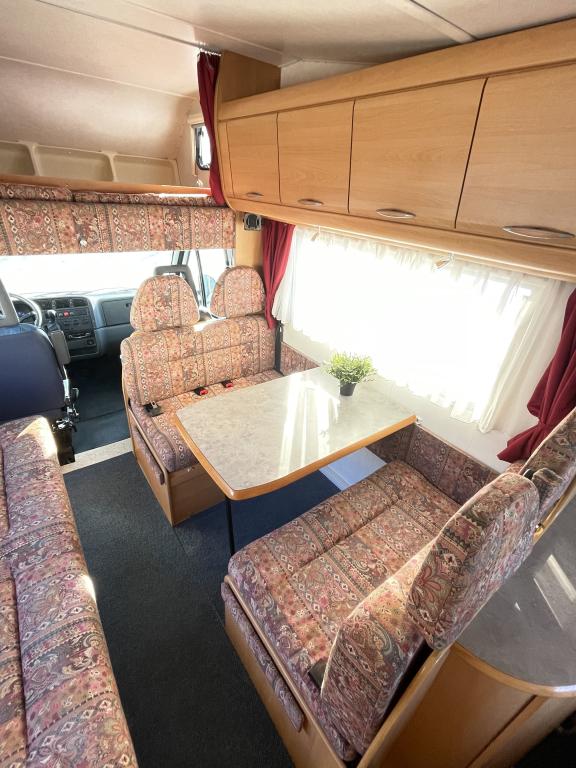 Näppärä, vain 5,5 m pitkä matka- auto. Rekisteröity kuudelle, makuupaikat 5- 6:lle.