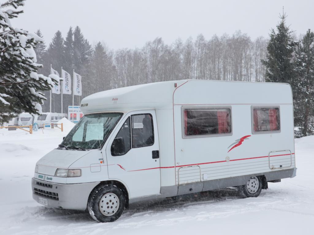 Varusteina mm: Tehokas 6 kW- Truma- keskuslämmitys, Markiisi, Pyöräteline, Vetokoukku, 2 x Renkaat,..