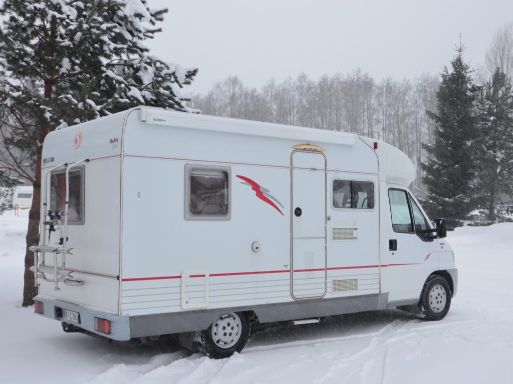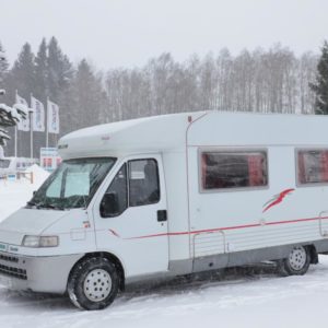 Varusteina mm: Tehokas 6 kW- Truma- keskuslämmitys, Markiisi, Pyöräteline, Vetokoukku, 2 x Renkaat,..