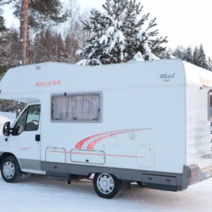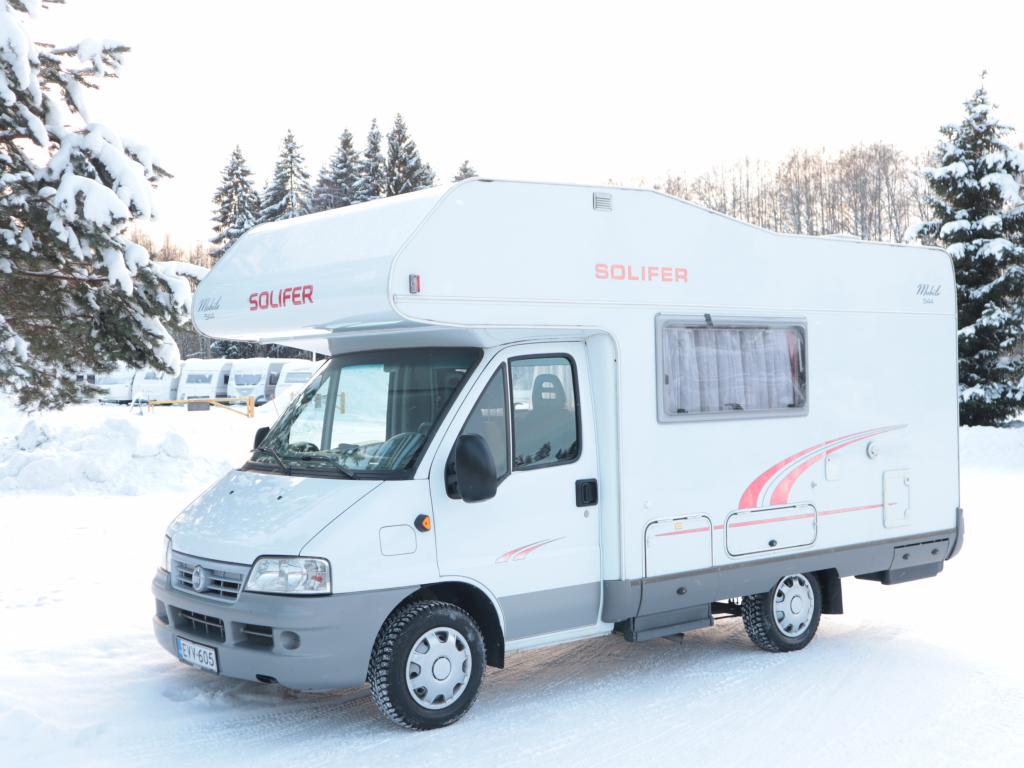 Siistikuntoinen Solifer avaralla pohjaratkaisulla. Rekisteröity 6:lle, makuupaikat 5- 6:lle.
