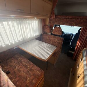 Suomeen uutena yksityishenkilölle vuonna 2002 rekisteröity alkovimallinen mukavat tilat tarjoava laatu Solikka. Palvellut samaa tyytyväistä omistajaa yli 20 vuotta ja varmasti palvelee myös seuraavaa käyttäjäänsä oikeinkin hyvin. Auton takaosasta löytyy poikittainen parivuode. Vaikka vuode on matalaa mallia, niin silti vuoteen alle jää todella hyvät säilytystilat ja sinne on käynti myös ulkopuolisen luukun kautta. Keskelle on sijoitettu WC/kylpyhuonetilat, sekä säilytystiloja. Etuosaa hallitsee vastakkain istuttava pöytäryhmä mistä saadaan sijattu vuode kahdelle hengelle. Ohjaamon päältä löytyy vielä tilava alkovivuode kahdelle henkilölle. Lämmitysjärjestelmänä on Alden nestekeskuslämmitys ja mukavuusvarusteena lisäksi sähköinen lattianlämmitys. Aika siistissä ja ryhdikkäässä kunnossa niin päältä kun sisältäkin. Toki jo reilu 20 vuotta on hiukan käytön jälkiä ja patinaa hipiään tuonut mutta näin se vähän tahtoo väkisin tapahtua.