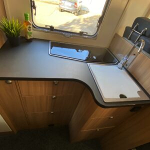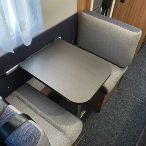 Pohjaratkaisussa auton etuosassa on kaksi pöytäryhmää, jotka molemmat on tarpeen vaatiessa sijattavissa lisävuoteiksi. ”Helppoja” makuupaikkoja on tarjolla katosta laskeutuvan nostovuoteen muodossa, sekä takaseinälle sijoitetuissa poikittaisessa kerrosvuoteessa.