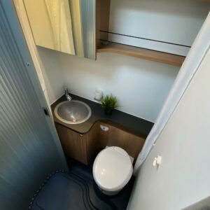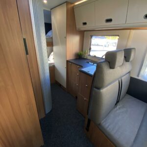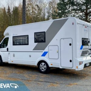 Todella moneen taipuva puoli- integroitu matka- auto. Istuma- ja makuupaikat jopa seitsemälle! Auton takaosasta löytyvät poikittaiset kerrosvuoteet ja näistä alempi on mahdollista nostaa ylös, jolloin tarjolla on mukavasti säilytystilaa ison takatallin muodossa.