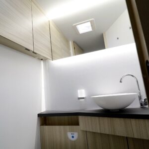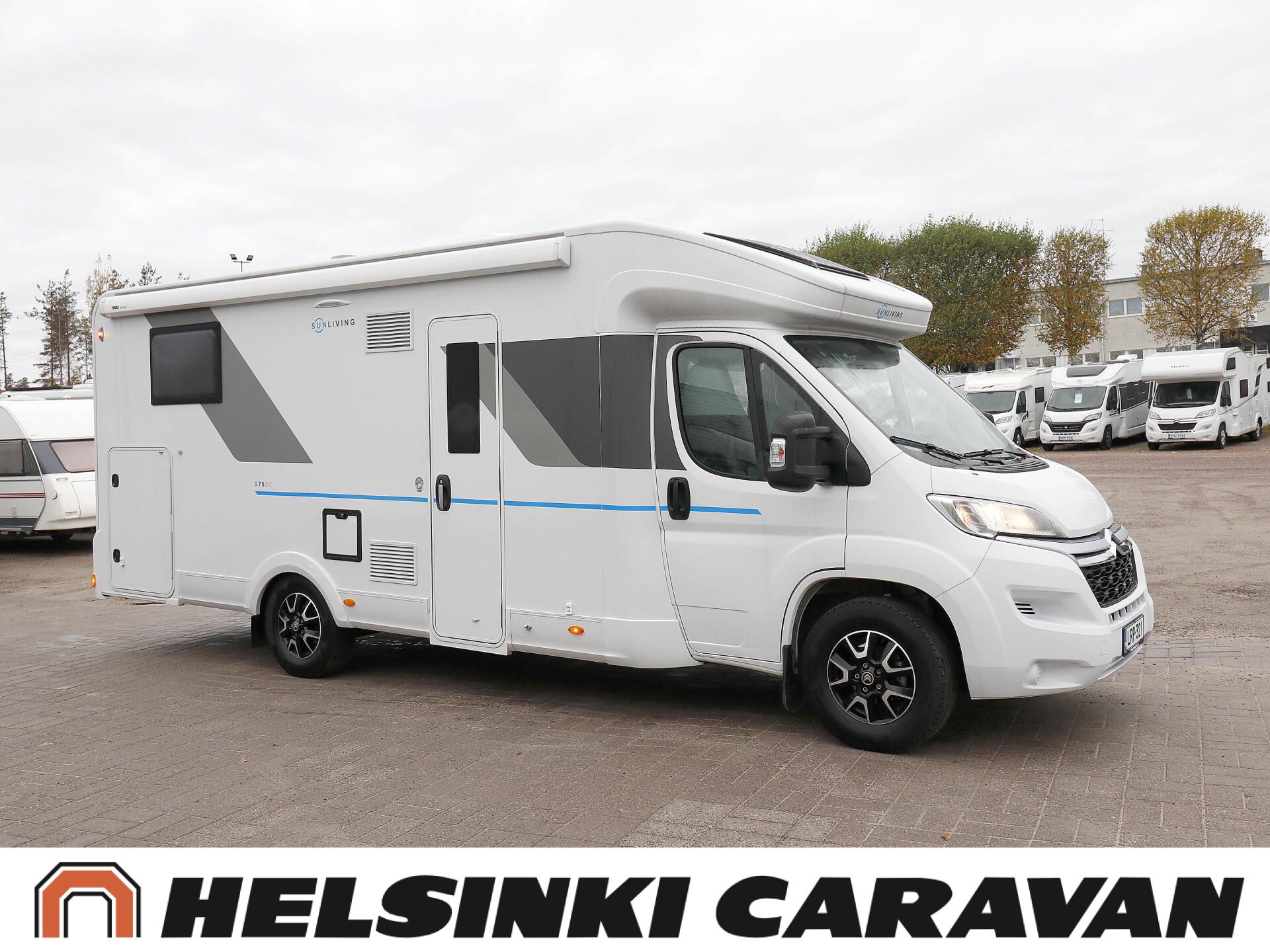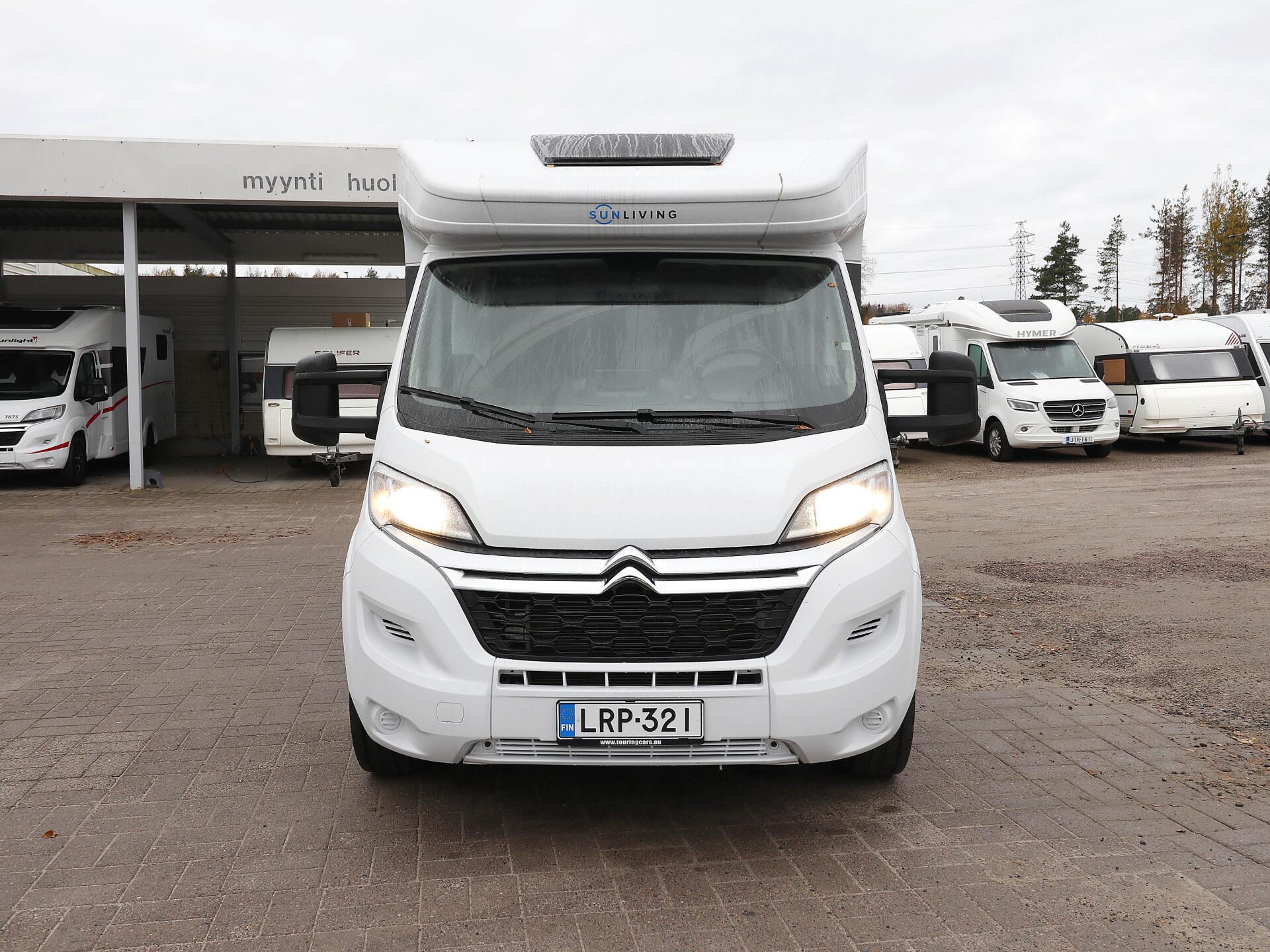 Sunliving by Adria, saareke- ja nostovuoteella. Lämmitys toimii kaasulla ja sähköllä. Ilmastoinnit ohjaamossa ja asuinosassa takaavat mukavan matkanteon kesäkuumalla!