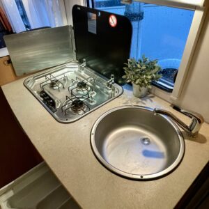 Keittiö mahdollistaa ruoanlaiton matkan varrella, ja asuintilan ilmastointi pitää sisäilman miellyttävänä säästä riippumatta. Kokonaisuutena tämä Transit tarjoaa valmiin ja toimivan matkakodin, joka tekee matkoista mukavia ja huolettomia koko porukalle.