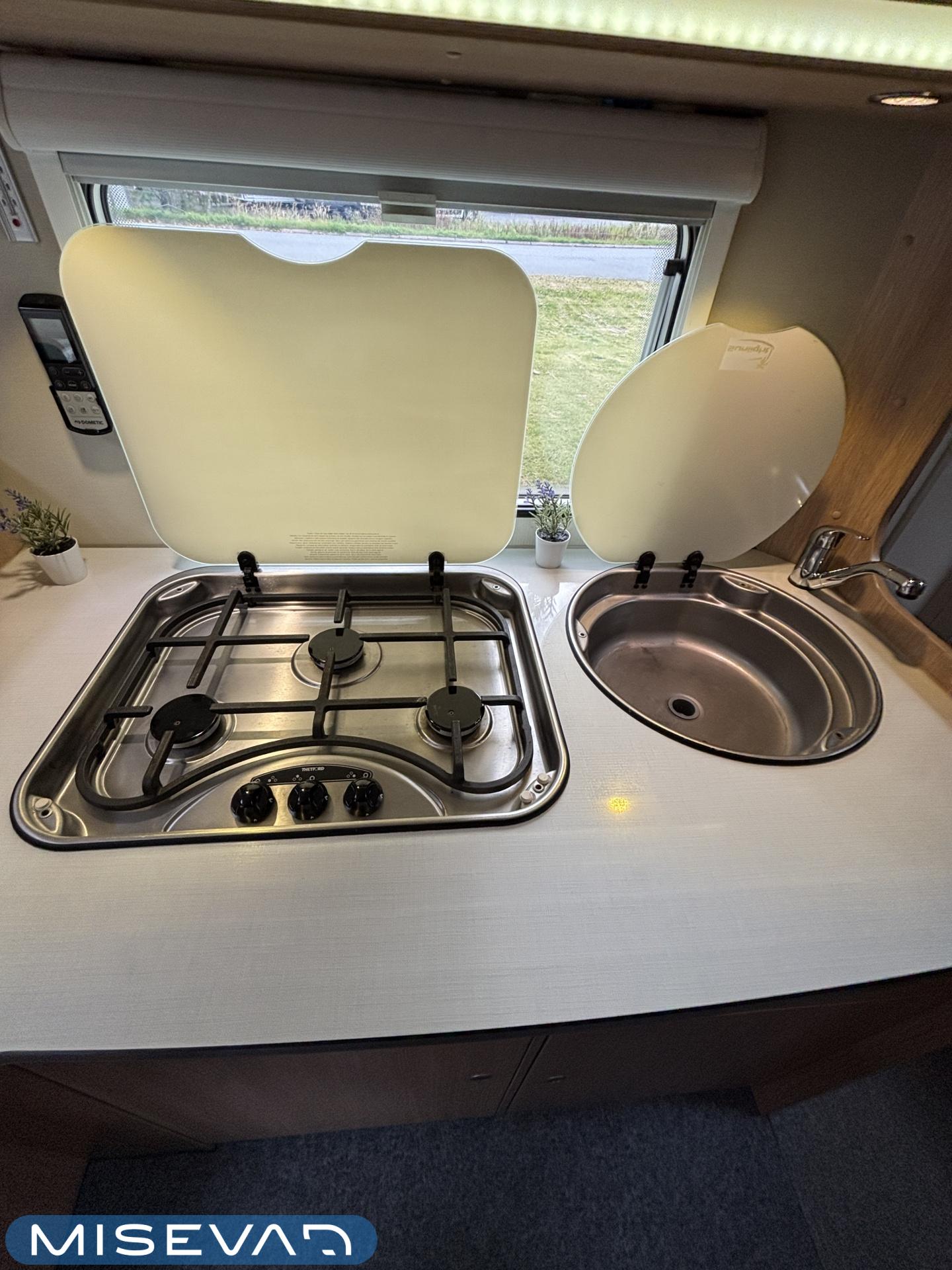 ABS-jarrut, Ajonvakautusjärjestelmä, Ajotietokone, Ilmastointi ajotilassa, Jääkaappi, Kasetti WC, Kasettiverhot, Kattoluukku, Kerrossänky, Keskuslämmitys, Liesi, Lohkolämmitin, Luistonesto, Lämminvesiboileri, Markiisi, Ohjaustehostin, Pakastelokero, Parivuode, Pesuallas, Pysäköintikamera, Pyöräteline, Radio, Suihku, Sähkökäyttöiset ikkunat, Sähköpatruuna, Sähköpeilit, Sähkörappu, Trumatic, Vakionopeudensäädin, Vetokoukku, Ilmastointi (asuintila), Kesärenkaat, Talvirenkaat(nasta), Invertteri, Asuinosan hyttysovi/verho
