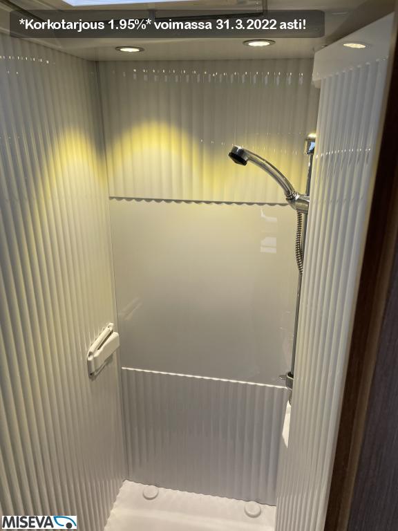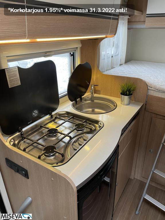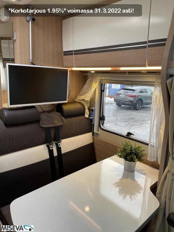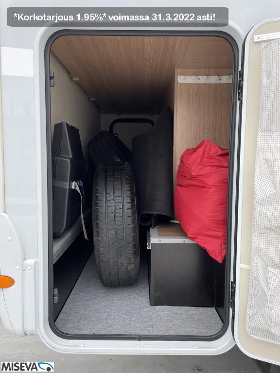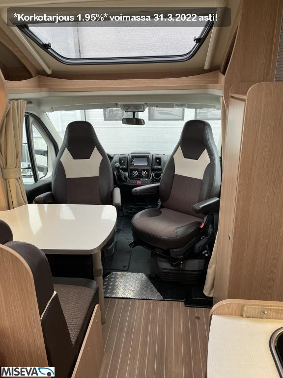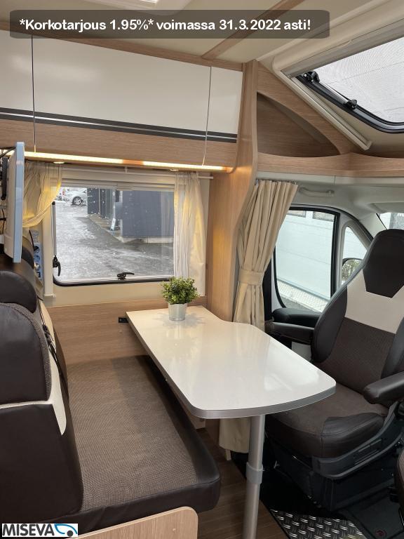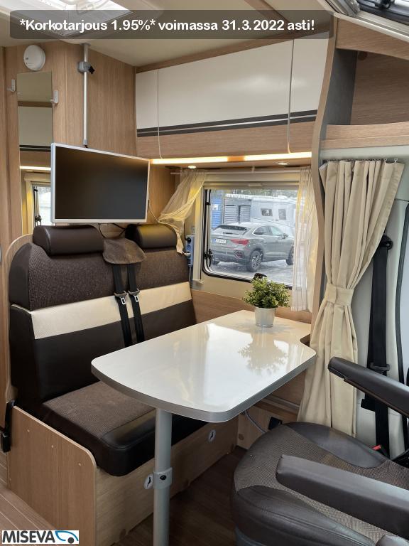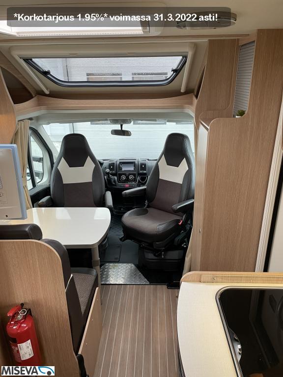 Ajotietokone, ABS-jarrut, Airbag, Aurinkopaneeli, Ilmastointi ajotilassa, Ilmastointi man., Jääkaappi, Kasetti WC, Kasettiverhot, Kattoluukku, Keskuslukitus, Keskuslukitus kaukosäädöllä, Keskuslämmitys, Käynnistyksenesto, Liesi, Lämminvesiboileri, Markiisi, Ohjaustehostin, Pakastelokero, Parivuode, Parkkitutka / kamera, Pesuallas, Pyöräteline, Stereot, Suihku, Sähkökäyttöiset ikkunat, Sähköpeilit, Sähkörappu, Trumatic, Turbo, Vak.nopeudensäädin