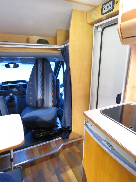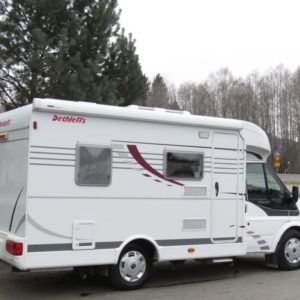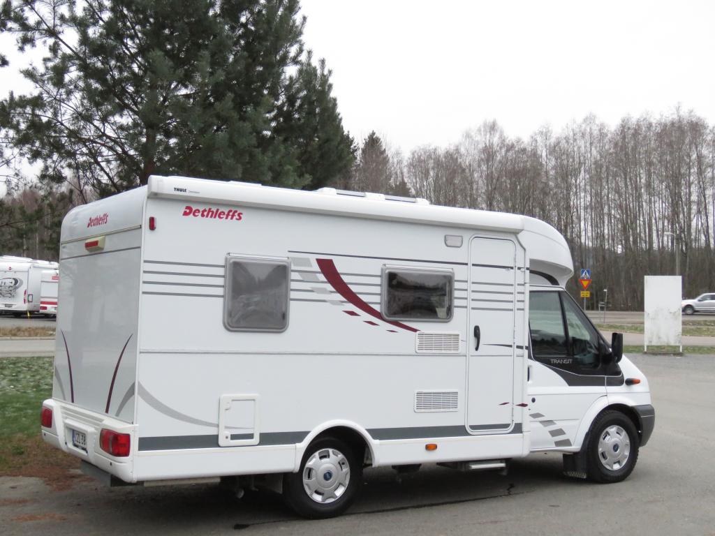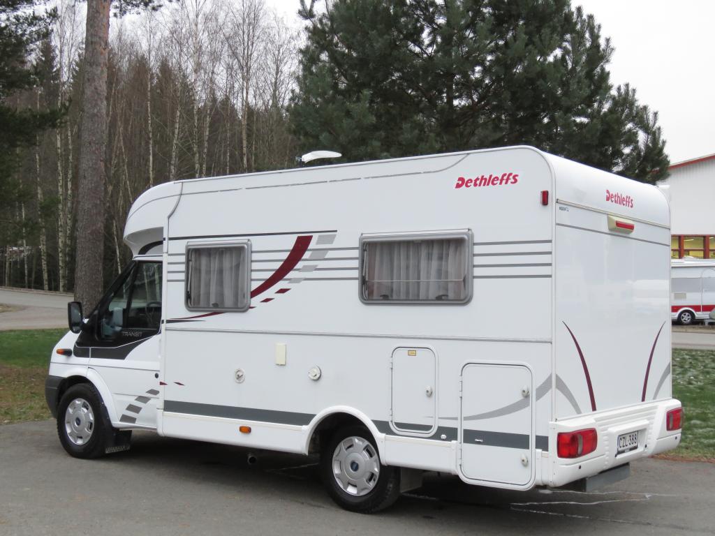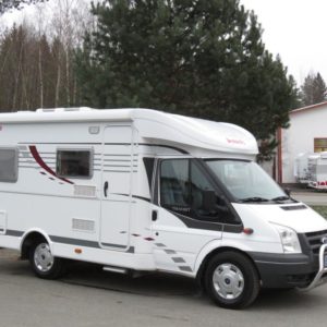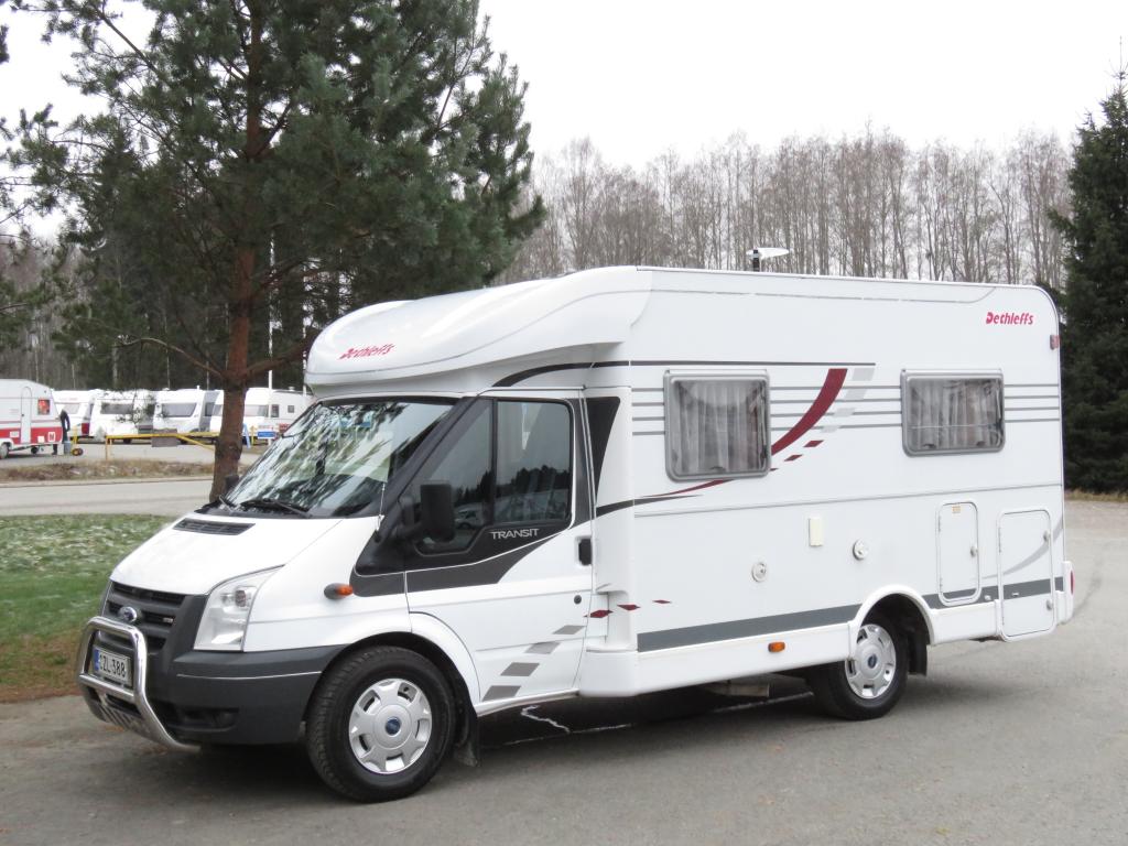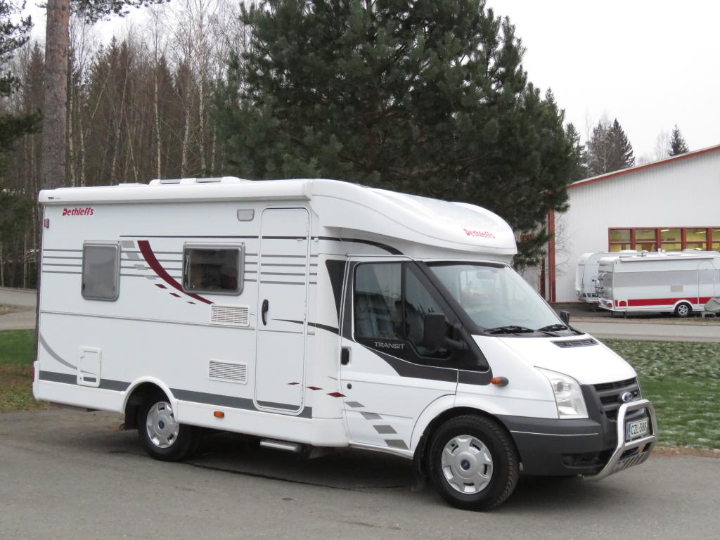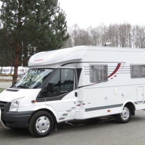Näppärä, alle 6 m pitkä matka- auto Transitin pirteällä 130 hv- moottorilla.