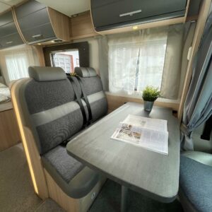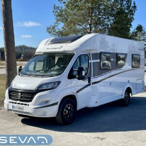 Upea ja hyvin varusteltu matkailuauto, jossa yhdistyvät laadukas toteutus, harkitut materiaalit ja aidosti toimivat ratkaisut.