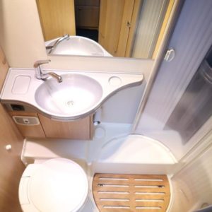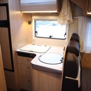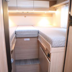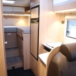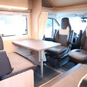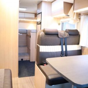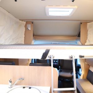 Auton takaosassa pitkittäiset erillisvuoteet jotka yhdistettävissä koko auton levyiseksi parivuoteeksi. Auton etuosasta löytyy viihtyisä pöytäryhmä sivusohvalla sekä katosta laskeutuva nostovuode. L- keittiö isolla jääkaapilla varustettuna ja tilava pesuhuone löytyvät auton keskivaiheilta.
