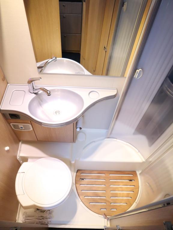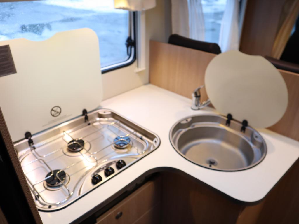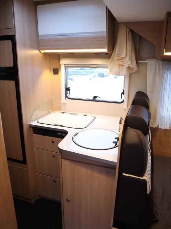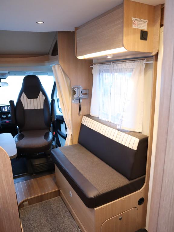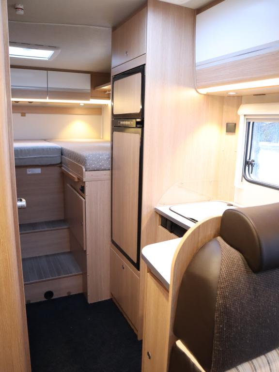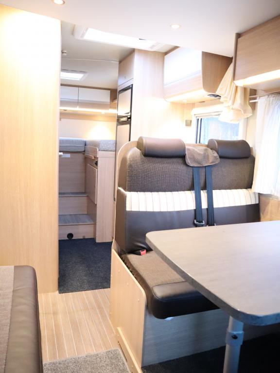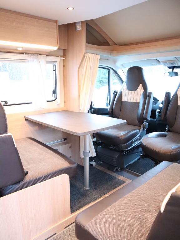 Auton takaosassa pitkittäiset erillisvuoteet jotka yhdistettävissä koko auton levyiseksi parivuoteeksi. Auton etuosasta löytyy viihtyisä pöytäryhmä sivusohvalla sekä katosta laskeutuva nostovuode. L- keittiö isolla jääkaapilla varustettuna ja tilava pesuhuone löytyvät auton keskivaiheilta.