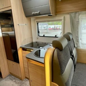 Auton takaosassa pitkittäiset erillisvuoteet jotka yhdistettävissä koko auton levyiseksi parivuoteeksi. Vuoteiden alla iso läpilastattava takatalli. Auton etuosasta löytyy tyylikäs ja viihtyisä pöytäryhmä sivusohvalla sekä katosta laskeutuva nostovuode. L- keittiö isollajääkaapilla varustettuna löytyy auton keskiosasta.