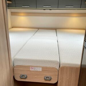 Auton takaosassa pitkittäiset erillisvuoteet jotka yhdistettävissä koko auton levyiseksi parivuoteeksi. Vuoteiden alla iso läpilastattava takatalli. Auton etuosasta löytyy tyylikäs ja viihtyisä pöytäryhmä sivusohvalla sekä katosta laskeutuva nostovuode. L- keittiö isollajääkaapilla varustettuna löytyy auton keskiosasta.