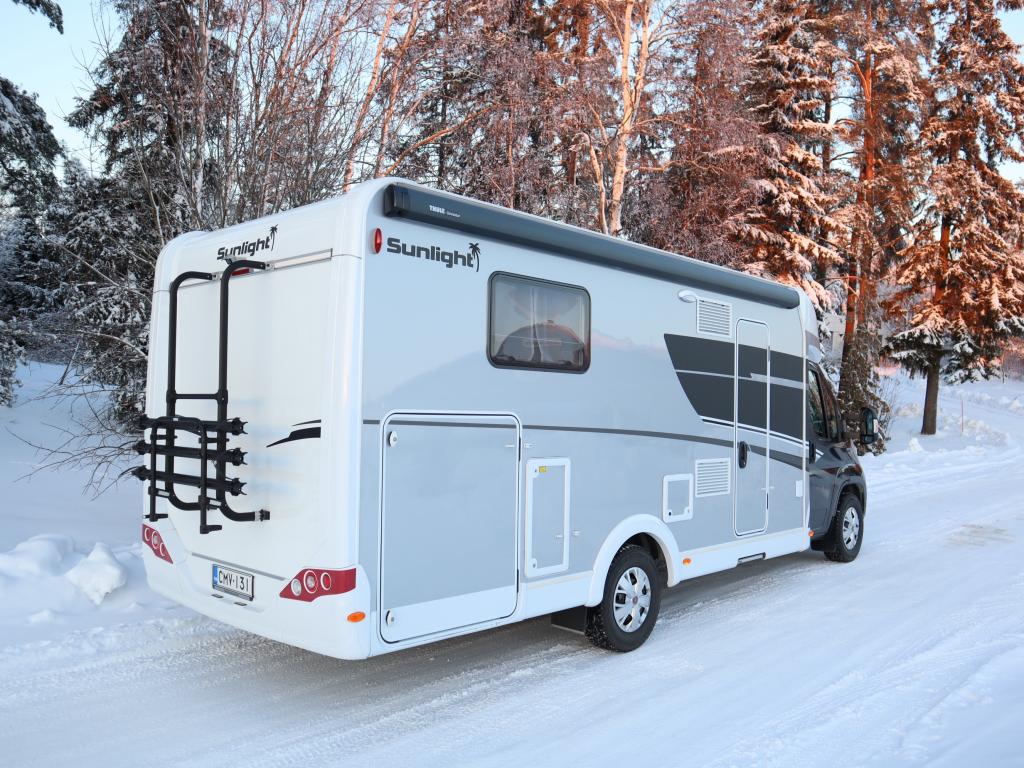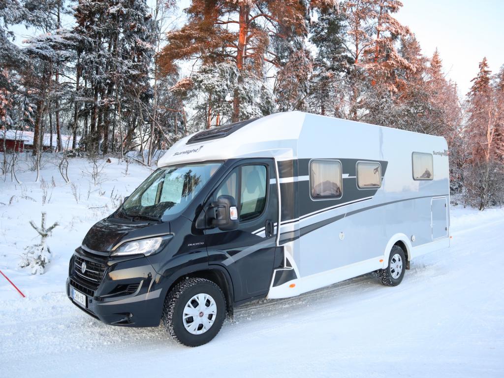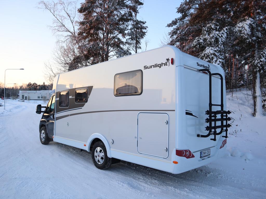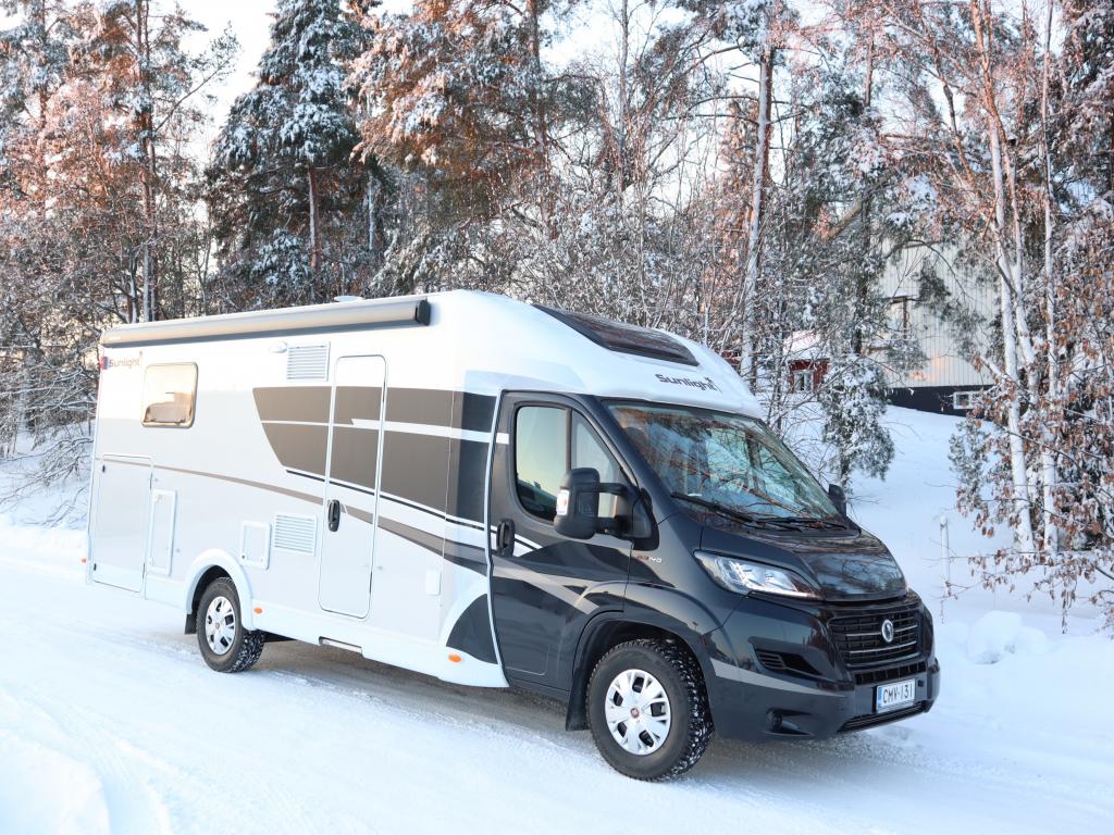 Varusteina mm. 2 x renkaat, peruutuskamera/ navigaattori, markiisi, pyöräteline ym….