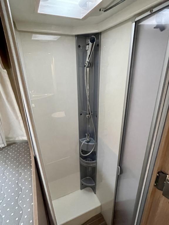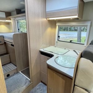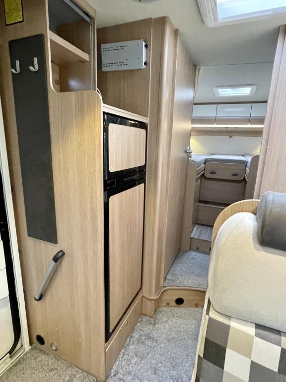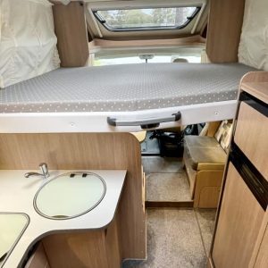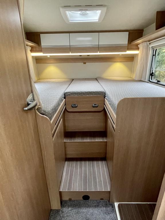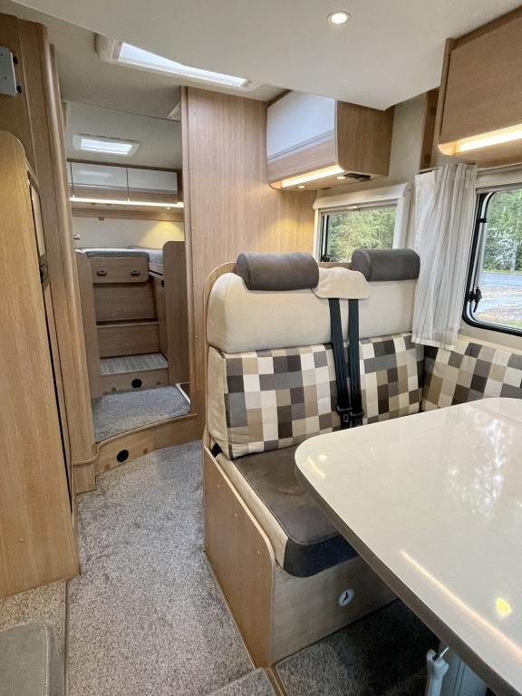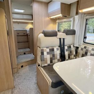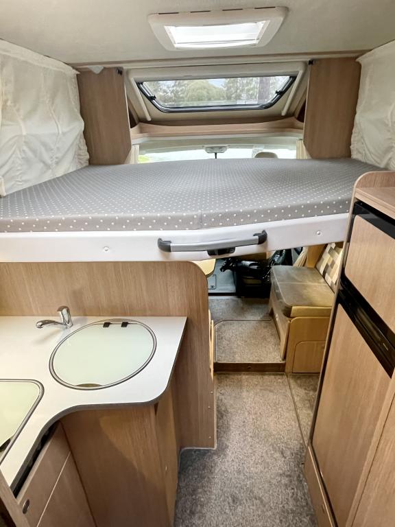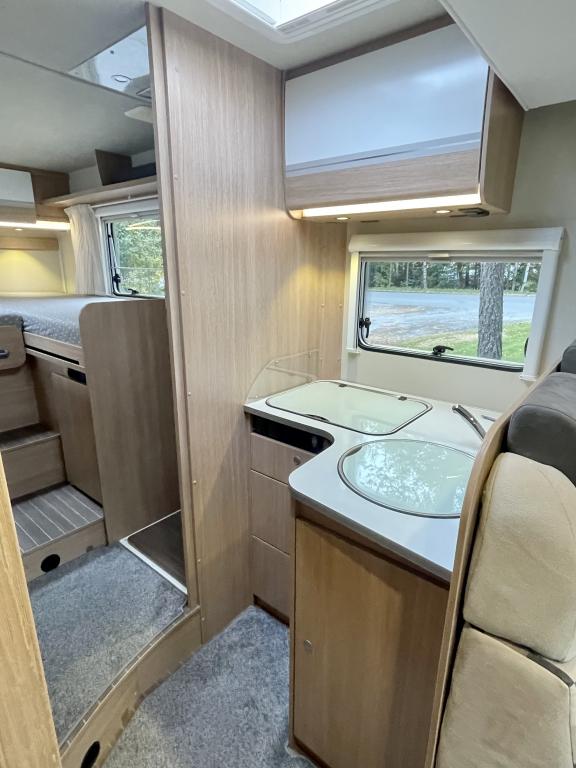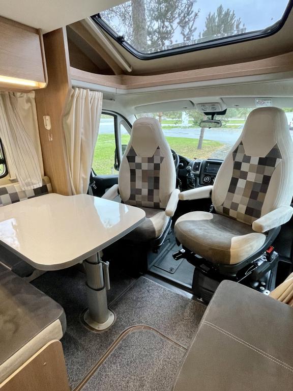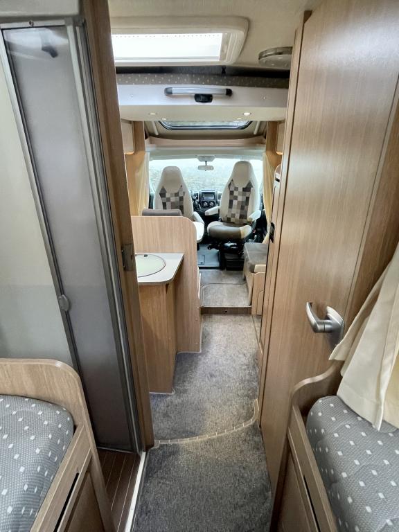 Erinomainen pohjaratkaisu, auton takaosassa erillisvuoteet jotka levitettävissä suureksi parivuoteeksi. Takaosassa myös erilliset suihku & wc- tilat. Keskiosassa keittiö ja reilunkokoinen jääkaappi. Etuosassa sohvaryhmä sekä kääntyvät etuistuimet. Sohvaryhmän päällä parivuoteen kokoinen laskuvuode jonka yllä kattoikkuna.