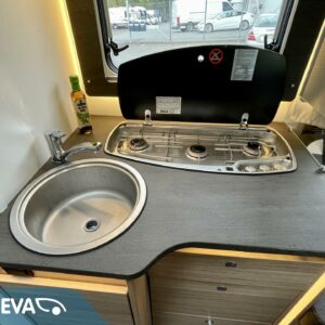 Auton etuosassa on hulppea pöytäryhmä jonka ympärille mahtuu helposti 6 ihmistä iltaa istumaan. Kulkemisen helpottamiseksi pöydän saa näppärästi ”puolitettua”. Pöytäryhmän päälle saa tarvittaessa laskettua nostovuoteen, joka tuplaa makuupaikat.