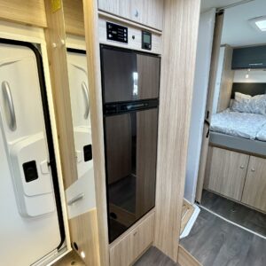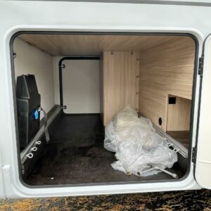 Takaosasta löytyy muhkean saarekevuoteen lisäksi erilliset suihku-/ WC- tilat. Takaosa on tarvittaessa eristättävissä omaksi tilakseen välioven avulla.