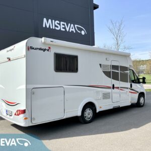 Avara saarekevuoteinen matka-auto laskuvuoteella. Edessä valoisa pöytäryhmä sivusohvalla. Istuinryhmän yllä leveä alas laskettava parivuode. Keskellä keittiö jossa suuri jääkaappipakastin -yhditelmä. Takana valtava saarekevuode. Erilliset suihku- ja wc- tilat.