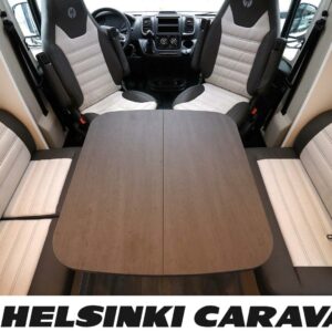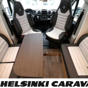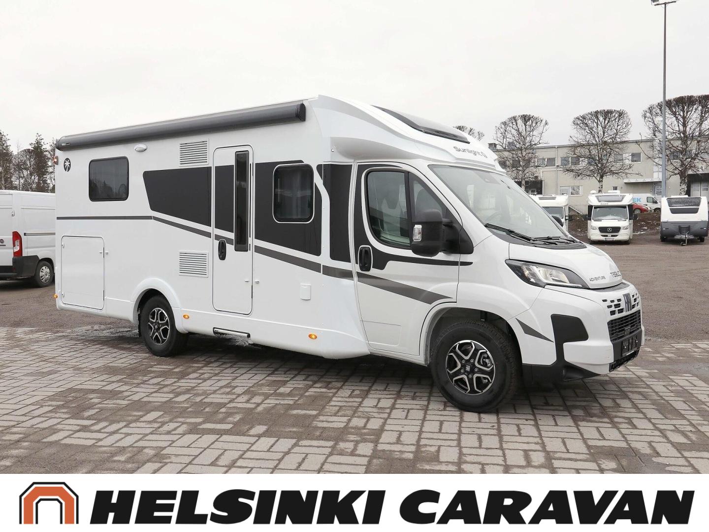 Viihtyisä ja luotettava matka-auto hyvillä varusteilla edullisesti. Edessä suuri istuinryhmä sivusohvalla ja vuoteen yllä helposti alaslaskettava parivuode. Keskellä avara keittiö suurella jääkaappipakastimella. Taaempana erilliset suihku ja wc, joista suihkua käytettävissä myös vaate-/säilytyskaappina. Takana leveä saarekevuode, josta helppo nousta molemmin puolin toista häiritsemättä. Vuoteen alla tilava ja monikäyttöinen takatalli, jossa ovet molemmin puolin.