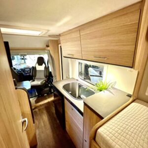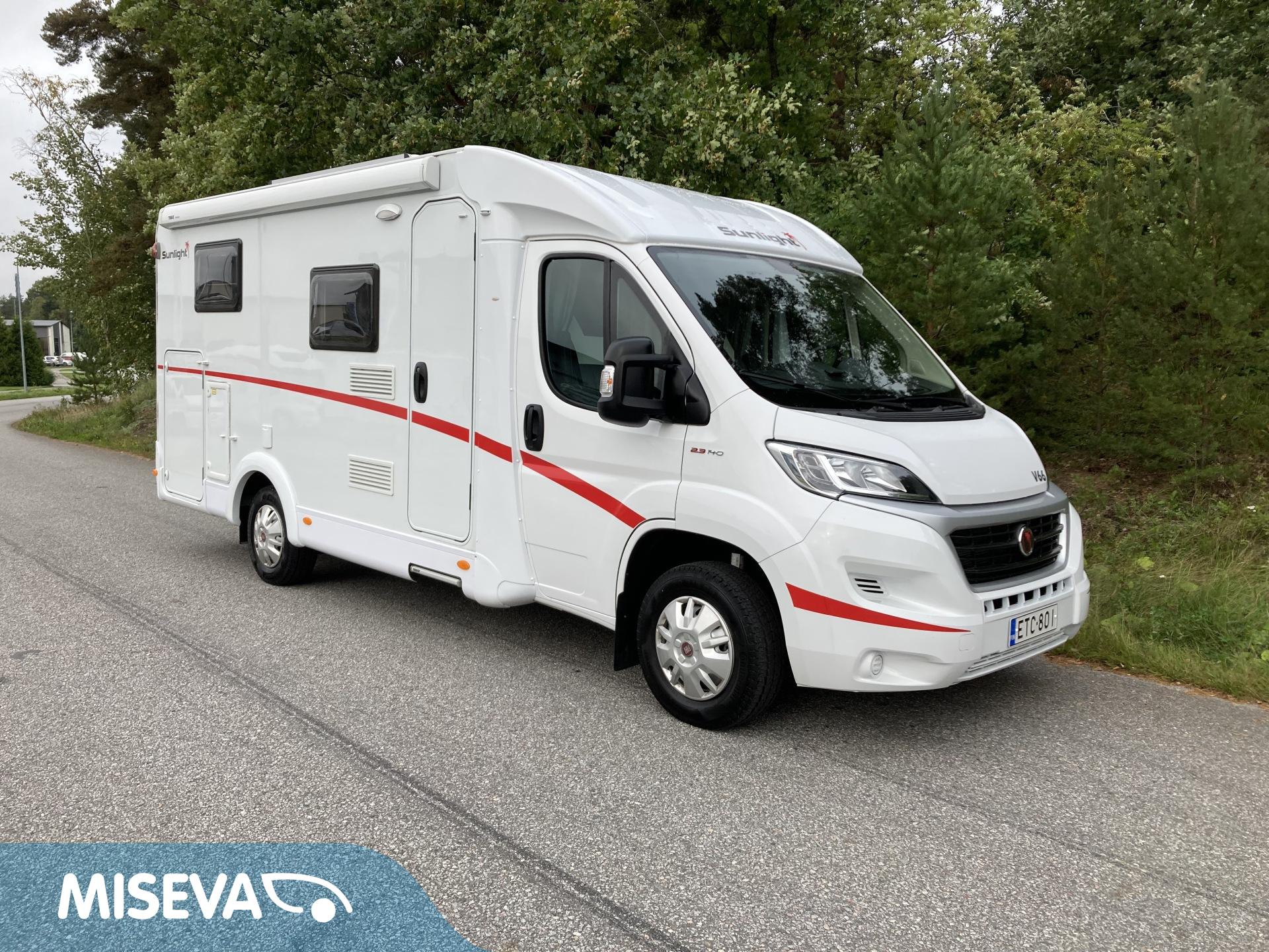 Hyväkuntoinen Sunlight pienillä kilometreillä. Takana erillisvuoteet ja alla erittäin tilava tavaratila molemminpuolisin luukuin, keskellä kunnollisen kokoinen pesuhuone kääntyvällä suihkuseinällä, keittiö, edessä istuinryhmä 4:lle kääntyvin ohjaamon penkein.