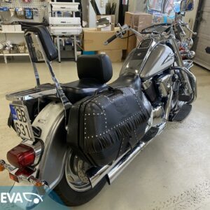 Born to be wild! Muhkea maantieristeilijä odottaa uutta kipparia. Tällä kun päästelee kohti auringon laskua niin siinä sielu lepää. Alhaalta vääntävä puolitoistalitrainen V2 tarjoaa vaivatonta kyytiä ja upean soundin. Jos pidempää lenkkiä lähtee heittämään, niin mukaan mahtuu hyvin reissukampetta, koska tähän kokonaisuuteen kuuluu mukaan Givin kova laukkusarja. Ja jos vielä pidempää reissua meinaa heittää, niin tarakalle on Kapan iso takalaukku. Kuljettajalle mukavuusvarusteena korkeussäädettävä selkänoja. Vähän niin kun kevätaurinko tuolla jo pilkistelisi ja pikitietkin alkaisi sulamaan, joten toimi nopeasti ja tule hakemaan itsellesi tämä maanteiden kunkku!