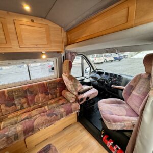 Englantilaisen Swift koritehtaan rakentama näppärä retkeilyauto. Auto on rekisteröity kuudelle henkilölle ja vyöpaikkoja löytyy kolmelle henkilölle. Loput matkustuspaikat sivusohvalla kylki menosuuntaan päin. Vuodepaikkoja saadaan 2-3 henkilölle. Ihan asiallisessa kunnossa koripinnoiltaan niin sisä, kun ulkopuoltakin. Toki 25 vuotta ja reilu 300tkm. käytön jälkiä jättää, mutta ei missään nimessä mikään rytökasa. Pikku askartelulla tästä saa ihan mahtavan reissukaverin. Auton takaosassa on keittiö, sekä WC-tilat. Vasemmalla sivulla oleva pitkä sivusohva saadaan levitettyä parivuodekokoon. Sisäänkäynnin vieressä olevasta istuimesta saadaan yksi lisävuode.