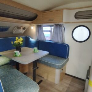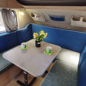 Varusteina mm: Truma- lämmitin, Jääkaappi, PortaPotti- WC,..