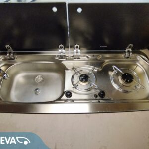Jääkaappi, Kattoluukku, Liesi, Pesuallas, Trumatic, Tukijalat