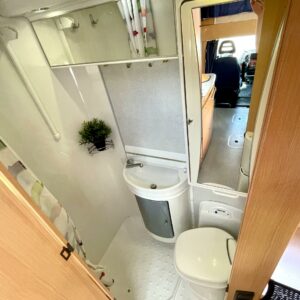Lyhyt 5,6 metrinen matka-auto pienellä ajomäärällä vaikka jokapäiväiseen käyttöön. Leveä parivuode edessä. Keskellä 4-hengen pöytäryhmä, joka sijattavissa parivuoteeksi ja vieressä keittiö, jossa reilusti laskutilaa. Takana tilava pesuhuone ja paljon kaappitilaa.