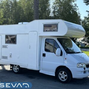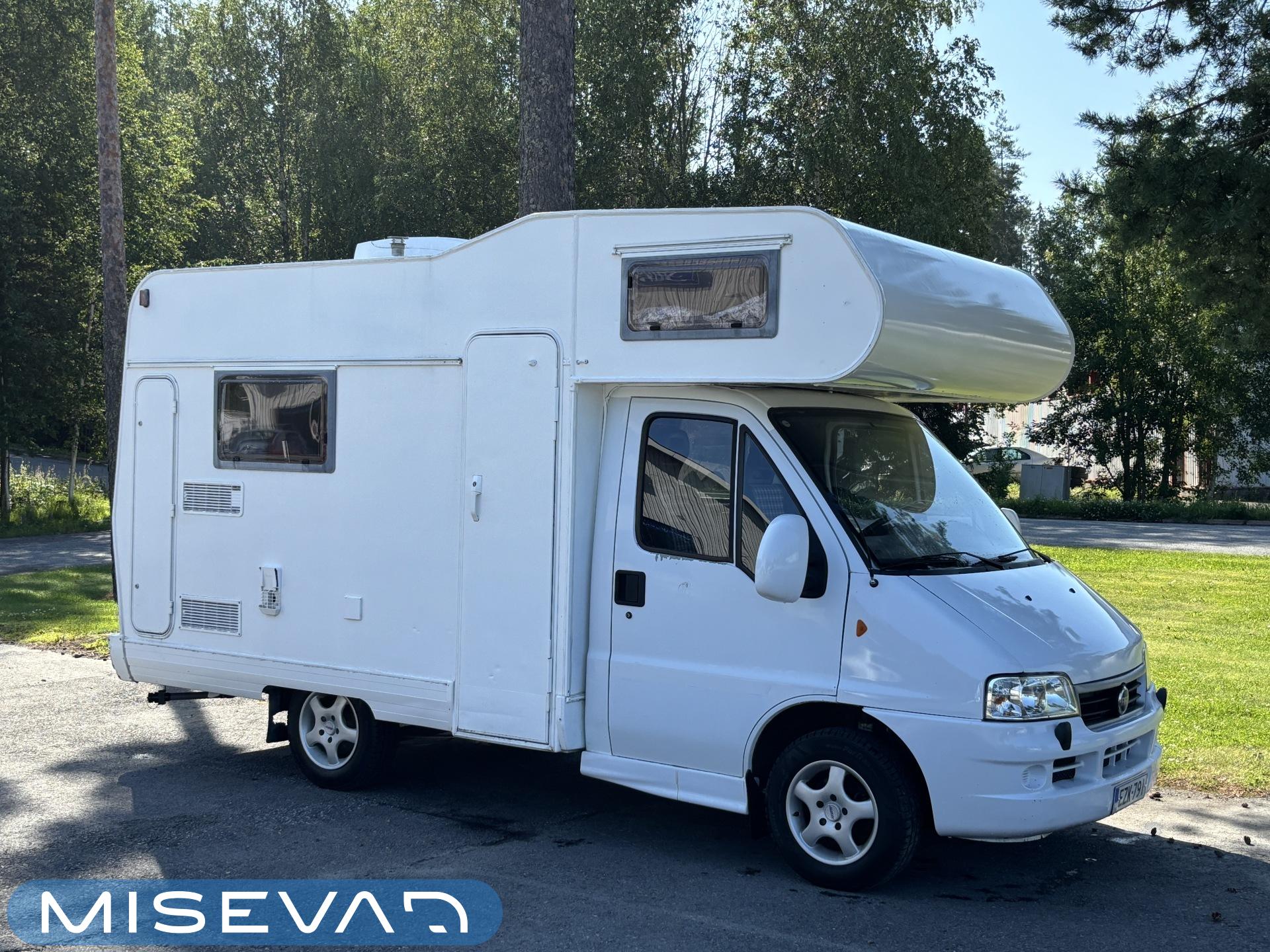 Persoonallinen alkovimallin matkailuato tarjolla. Vielä kerkeää kesän riemuretkille ja tämähän toimittaa hienosti vaikka tila-auton virkaa, kun löytyy rekisteröidyt matkustuspaikat peräti kuudelle henkilölle. Takaosassa on iso vaatekaapi, sekä vessa ja kylppäritilat. Etuosasta löytyy sitten vastakkain istuttava pöytäryhmä, sekä keittiö. Pöytäryhmästä saa sijattua vuoteen kahdelle henkilölle. Ohjaamon päällä on alkovivuode kahdelle henkilölle. Infrahan on ihan täyden matkailuauton infra, eli vedet tulee ja menee (jopa lämpenee), jääkaapissa pysyy virvokkeet kylmänä, liedellä paistelee pihvit ja Trumatic lämmittää kajuutan koleammilla keleillä. JA SITTEN, jos sattuu tulemaan kuumat kelit, niin kajuutta saadaan mukavan viileäksi kattoilmastoinnin avulla. Tulee ehkä jopa hieman mökkifiilis tuosta sisustasta. Onhän tässä ajan ja kilometrien tuomaa patinaa, mutta tässä on matalan kynnyksen mahdollisuus päästä lajin pariin. Karavaanareiden yleisin kommentti harrastuksestahan on ”on tää vaa niin mahtavaa hommaa” . Hanki tämä itsellesi ja kokeile pitääkö lause kutinsa ;-)