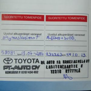 Myydään uudella tuulilasilla ja öljyt sekä suodatin on juuri vaihdettu. Talvirenkaat lähes uudenveroiset. Jakohihna vaihdettu 215tkm (1/2018). Vaihteisto- ja peräöljyt vaihdettu 192tkm (8/2015). Katsastettu 13.9.2019. Huoltokirja löytyy ja merkintöjä koko historian ajalta tasaisesti, mutta ei missään nimessä ole täydellinen.