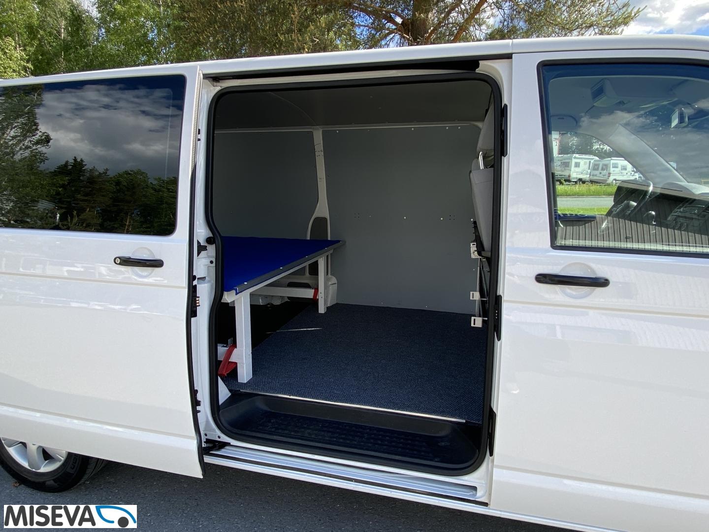 Hyvän huoltohistorian omaava siisti pitkä Transporter maltillisella ajomäärällä. Autossa mukana kevyt retkeilyvarustus mikä saa nopeasti poistettua tavarankuljetusta varten. Löytyy mm. asiallisesti rakennettu sänky mihin tulee myös patjat mukana. Defa verkkopistokkeen kautta saa 230v. sähkösyötön autoon sisään. Invertteri millä saa auton akusta 230v. Verhot ikkunoihin. Erilliset ilmanvaihtoventtiilit asennettavaksi etuovien ikkunoihin. Sänkyrungon alla hyvin säilytystilaa tavaroille. Kiinnityspaikka vaikkapa kylmälaukulle.