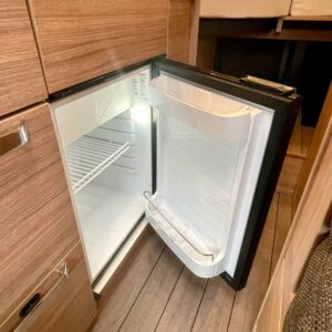 Auton etuosassa on istuinryhmä kääntyvine etupenkkeineen, keskiosassa on keittiö, missä kompressori jääkaappi ja myös kohtuullisesti laskutilaa. Pitkittäiset erillisvuoteet, mitkä voi sijata myös leveäksi parivuoteeksi, sijaitsevat kylpyhuoneen takana. Kylpyhuoneessa on myös suihku. Asuintilan lämmityksestä huolehtii Trumaticin ilmakeskuslämmitys ja kesällä erillinen ilmastointilaite pitää tilan mukavan viileänä.
