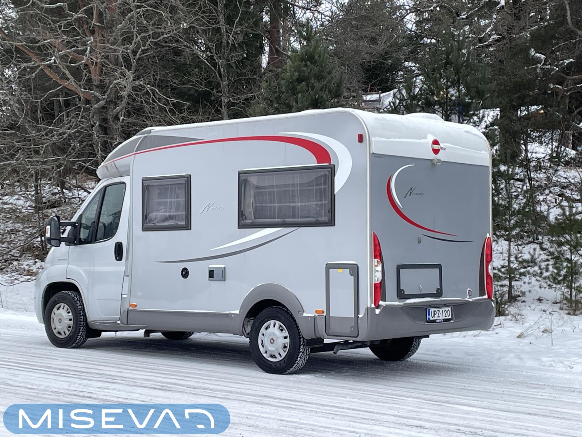 Tässä hieman esimerkkiä miten hellästi autoja tulisi pitää! Ensimmäiseltä käyttäjäomistajalta ja auto on selvästi ollut silmäterä. Kompakti monikäyttöajoneuvo millä tietysti hoitelee lomareissut, mutta tämähän palvelee hienosti myös työmatka-ajossa, tai vaikkapa kauppakassina. Takana on poikittainen parivuode ja vuoteen alle jää mukavasti tavaratiloja. Keskivaiheilta löytyy keittiö kompressori jääkaappilla, tiskialtaalla ja kaasuliedellä varustettuna. Toiselta sivulle on sijoiteltu WC-tilat. Edessä on pöytäryhmä kääntyvillä ohjaamopenkeillä. Lämmitysjärjestelmänä on Trumaticin ilmakeskuslämmitys sähköpatruunalla varustettuna. Ja löytyyhän lisäksi vielä mukavuusvarusteena sähköinen lattianlämmityskin. Ohjaamossa varusteina mm. ilmastointi ja vakkari, sekä multimedianäyttö navilla ja kameralla. Autoon on valmiiksi asennettuna myös markiisi ja vetokoukku (vetomassat 2500kg/750kg). On kyllä helmi, niin ulko kun sisäpinnoiltaankin … kuka kerkeää ekana?