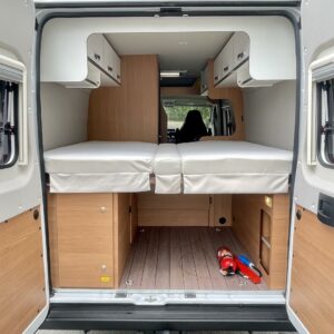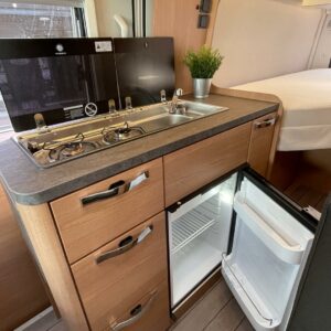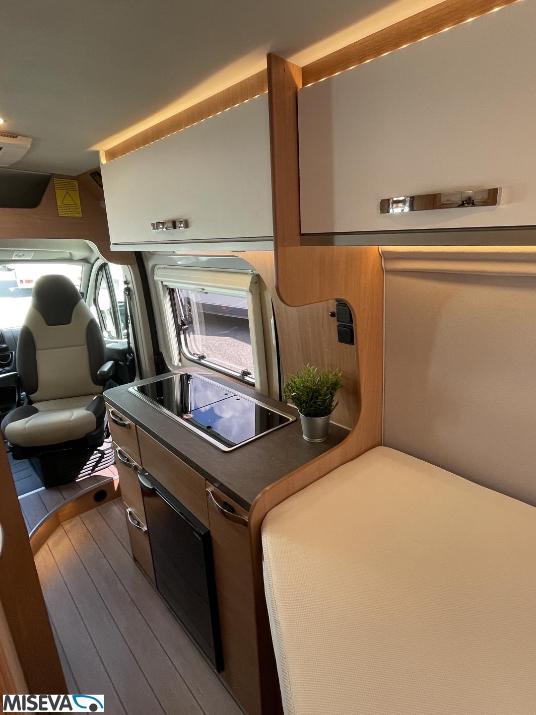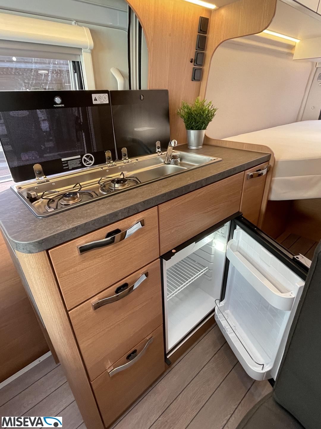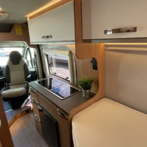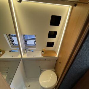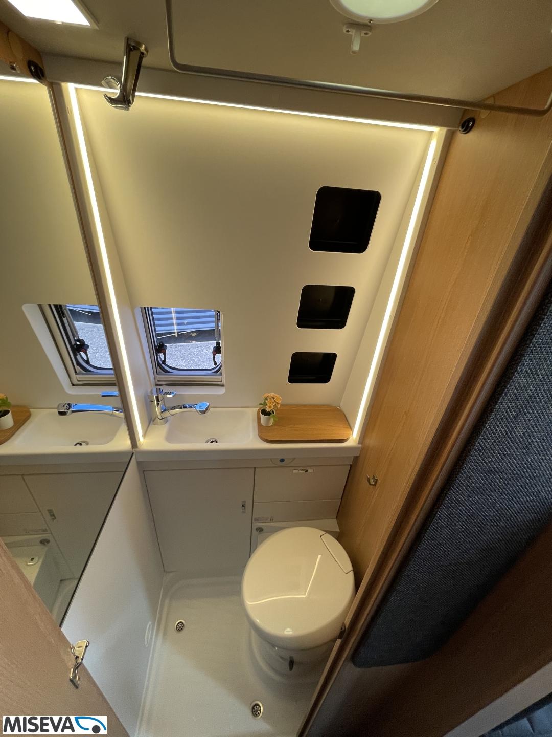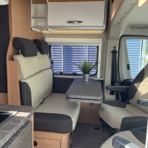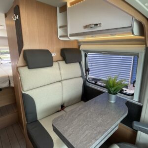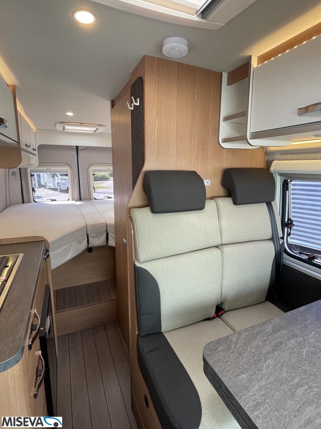 Kuuteen metriin pakattua liikkumisenvapautta halutulla pohjaratkaisulla. Erillisvuoteiden ansiosta matkakumppanin mahdolliset yöheräilyt eivät keskeytä unia. Auton etuosasta löytyy viihtyisä ja valoisa pöytäryhmä neljälle. Yhdistetystä pesuhuone/ WC- tilasta löytyy mukavana yksityiskohtana pieni ikkuna, joka mahdollistaa suihkun käytön myös auton ulkopuolella.