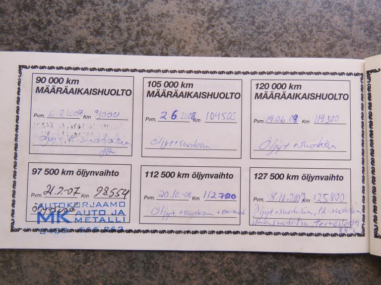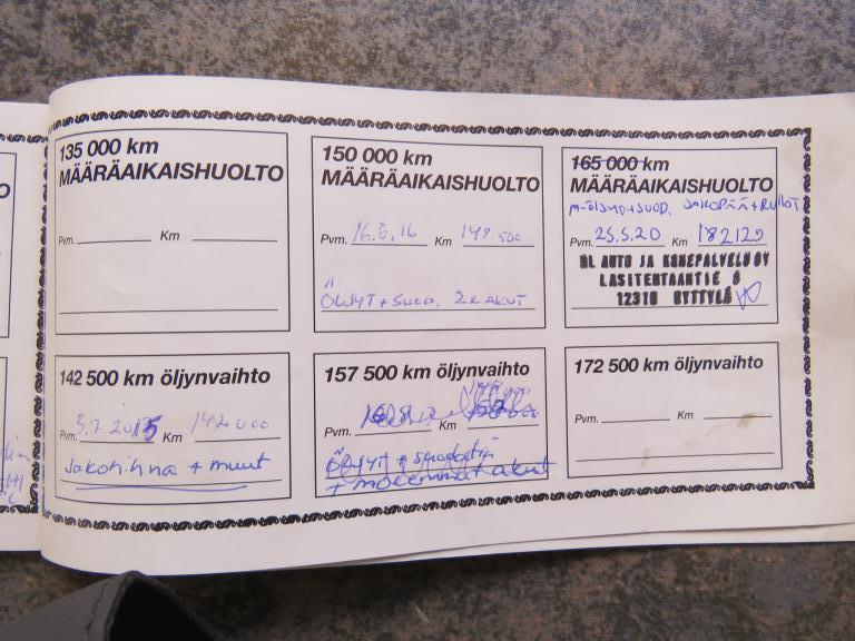 Viimeisin huolto (Öljynvaihtohuolto& Jakopää): 05/2020. Katsastettu 04/2020, seuraava katsastus viimeistään 04/2021.
