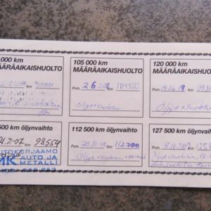 Viimeisin huolto (Öljynvaihtohuolto& Jakopää): 05/2020. Katsastettu 04/2020, seuraava katsastus viimeistään 04/2021.