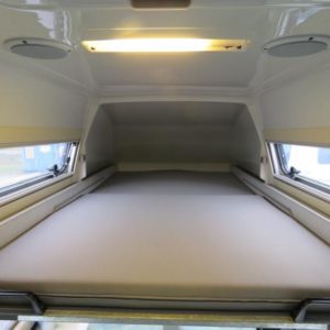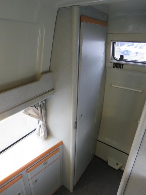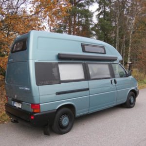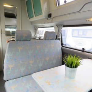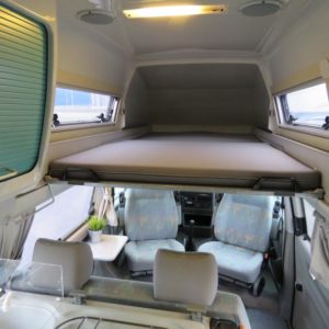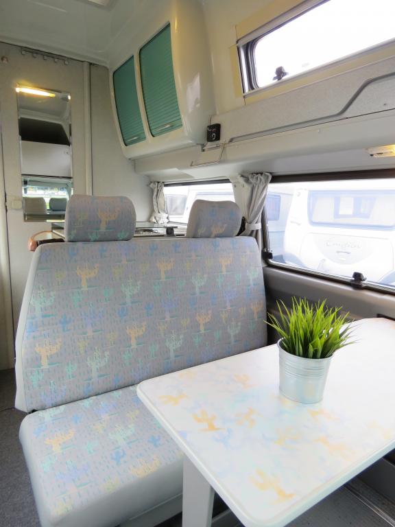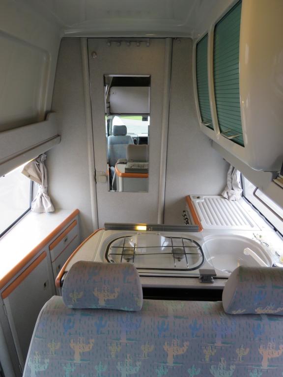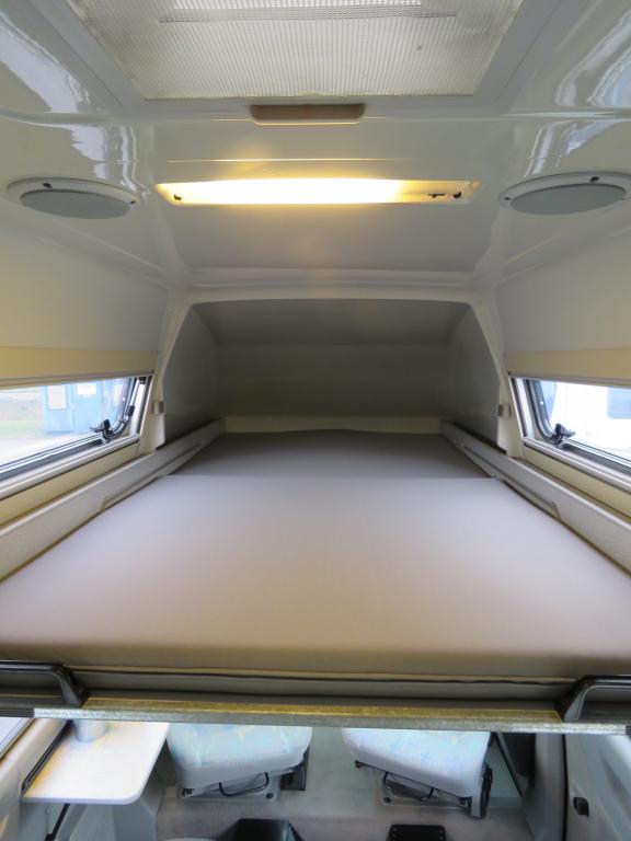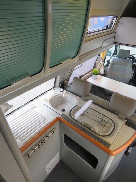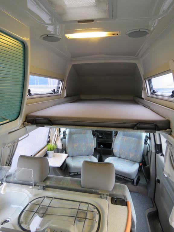 Rekisteröity 4:lle, makuupaikat 4:lle. Toinen parivuode löytyy auton kattokorotuksesta, toinen muodostuu käden käänteessä istuinryhmästä. Auton takaosassa keittiö jääkaapilla ja liedellä varustettuna.