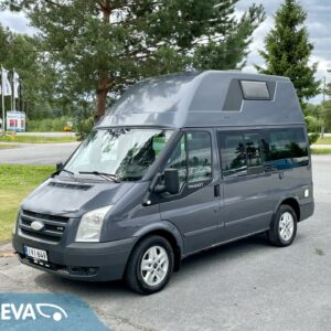Todella näppärä, alle 5 m pitkä täysikokoinen retkiauto, missä vuoteet neljälle ja istumapaikat viidelle.