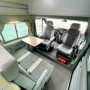 Auton takaosassa on keittiö, missä sijaitsee liesi ja jääkaappi, sekä runsaasti kekseliästä kaappitilaa. Auto on todella tilavan ja avaran oloinen korkeutensa ansiosta.