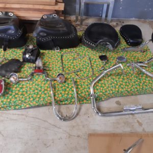 Pyörän mukana tulee ISO pahvilaatikollinen tarvikkeita, mm: