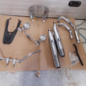 Pyörän mukana tulee ISO pahvilaatikollinen tarvikkeita, mm: