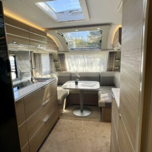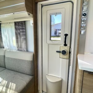 Pyöräteline, Pitkittäinen parivuode, Alde- nestekiertoinen keskuslämmitys, Sähköpatruuna, Suihku, Lattialämmitys (sähkö), Kasettiverhot, Kasetti WC, Liesi, liesituuletin, Jääkaappi, Pakastelokero, Parivuode, Tukijalat, Pesuallas, Markiisi